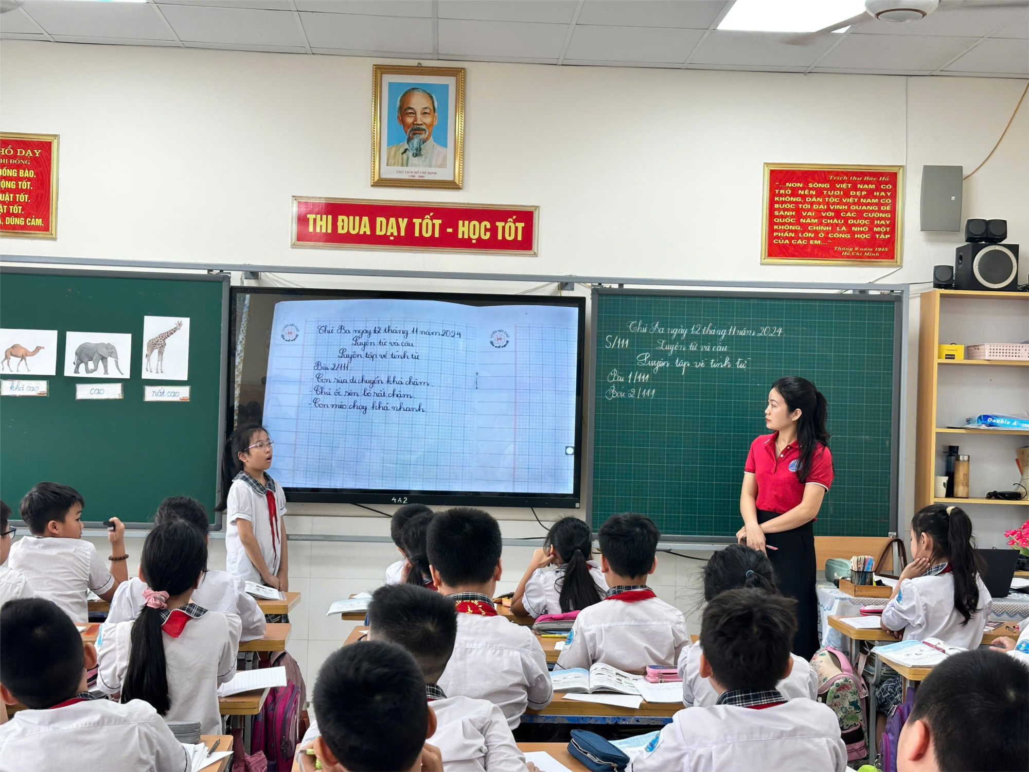 Cô giáo Nguyễn Hồng Phương đã khéo léo dẫn dắt, tạo hứng thú, ham thích cho học sinh qua bài dạy của mình. Khi giao nhiệm vụ, học sinh được làm việc cá nhân, quan sát con vật rồi kiểm tra, gọi ngẫu nhiên học sinh lên bảng bằng phương pháp Beeclass, học sinh được chia sẻ bài làm của nhóm mình qua trò chơi "tiếp sức". Các em đã tìm hiểu được các từ chỉ mức độ khác nhau kết hợp với tính từ phù hợp để viết được những câu văn hay, giàu cảm xúc.