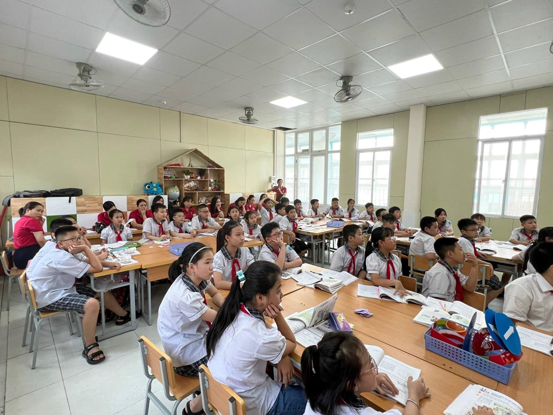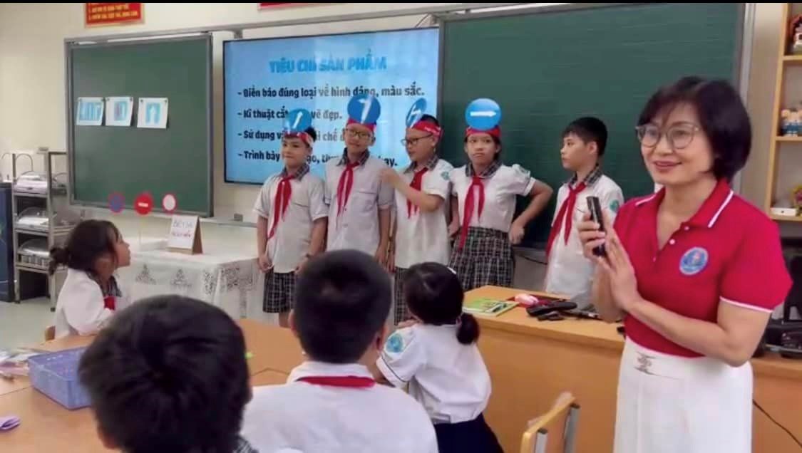 Tham dự chuyên đề có các cô giáo trong Ban Giám hiệu nhà trường cùng hội đồng sư phạm. Giáo dục STEM ở giai đoạn tiểu học nhằm giúp học sinh biết liên hệ kiến thức học được trong sách vở với thực tiễn, tạo điều kiện cho học sinh xây dựng năng lực giải quyết vấn đề, năng lực tư duy sáng tạo, năng lực giao tiếp, năng lực hợp tác. Với sự thành thạo về công nghệ thông tin, sự chuẩn bị chu đáo của giáo viên, tiết học đã mang đến cho học sinh niềm hứng thú, say mê. Qua kĩ thuật Mảnh ghép, các em học sinh đã trở thành những chuyên gia trao đổi, chia sẻ với các bạn về các nguyên nhân gây tai nạn giao thông. Những hoạt động tiếp theo, các em đã thảo luận và đưa ra những biện pháp để phòng tránh tai nạn giao thông đường bộ. Các em còn có cơ hội vận dụng các kiến thức Kĩ thuật, Mĩ thuật trong môn Khoa học, khéo léo tạo những sản phẩm minh họa biển báo giao thông bằng những vật liệu khác nhau.