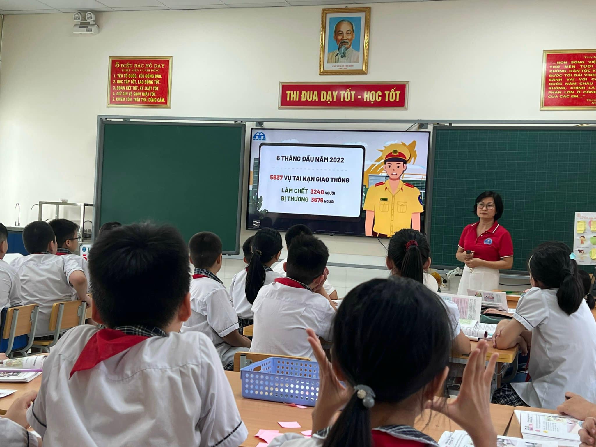 Tiết dạy được khép lại với vẹn nguyên cảm hứng học tập say mê của học sinh. Tin chắc rằng, sau tiết học, mỗi bạn nhỏ sẽ trở thành những tuyên truyền viên tích cực để vận động mọi người nâng cao ý thức chấp hành Luật giao thông đường bộ. Sau đây là một số hình ảnh của tiết.