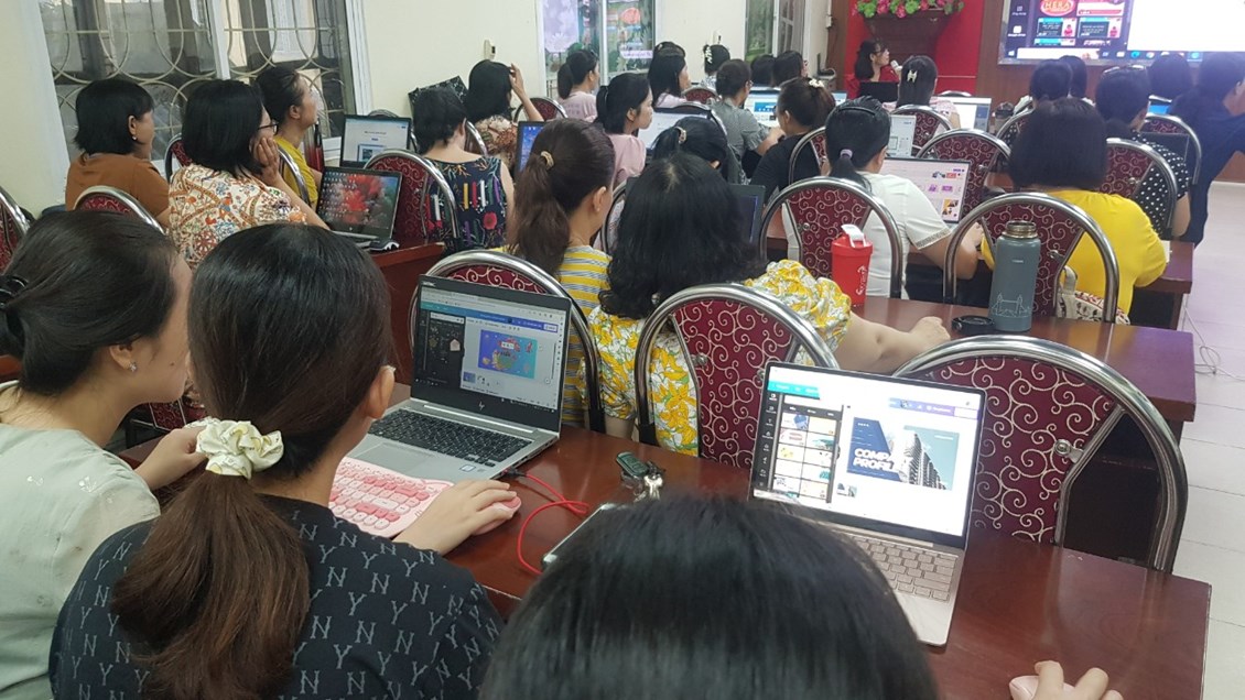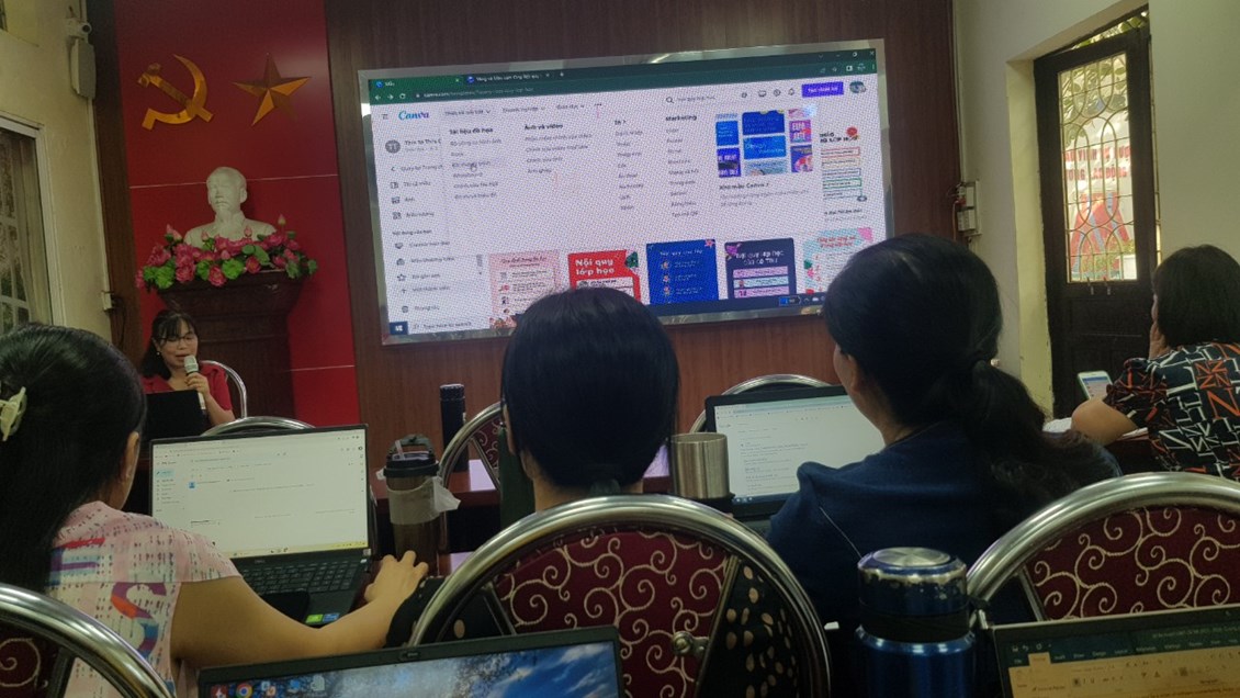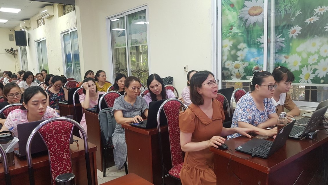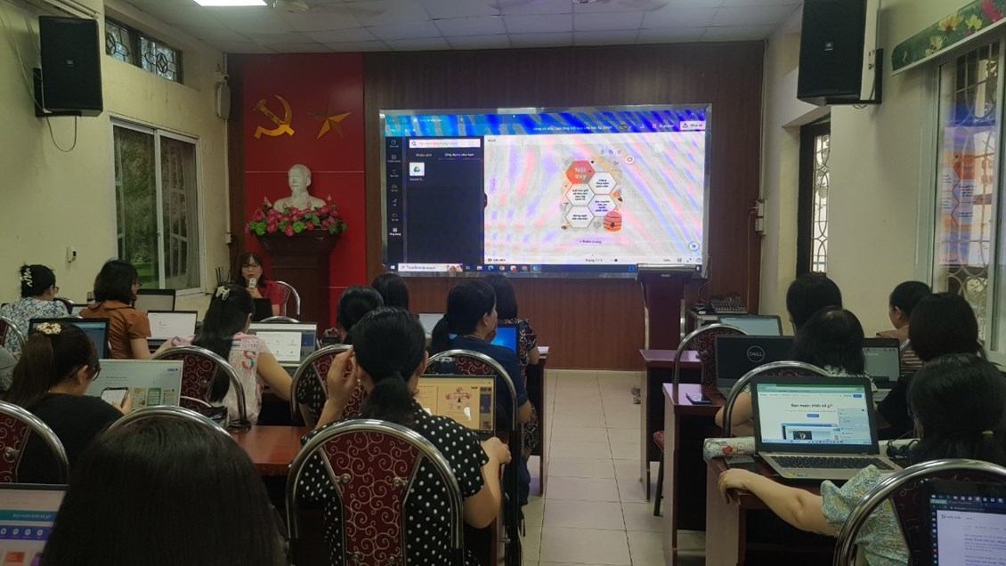 Nằm trong các hoạt động bồi dưỡng chuyên môn cho giáo viên dịp hè 2023, ngày 17/8/2023, trường tiểu học Võ Thị Sáu tổ chức lớp tập huấn công nghệ thông tin cho giáo viên toàn trường.
