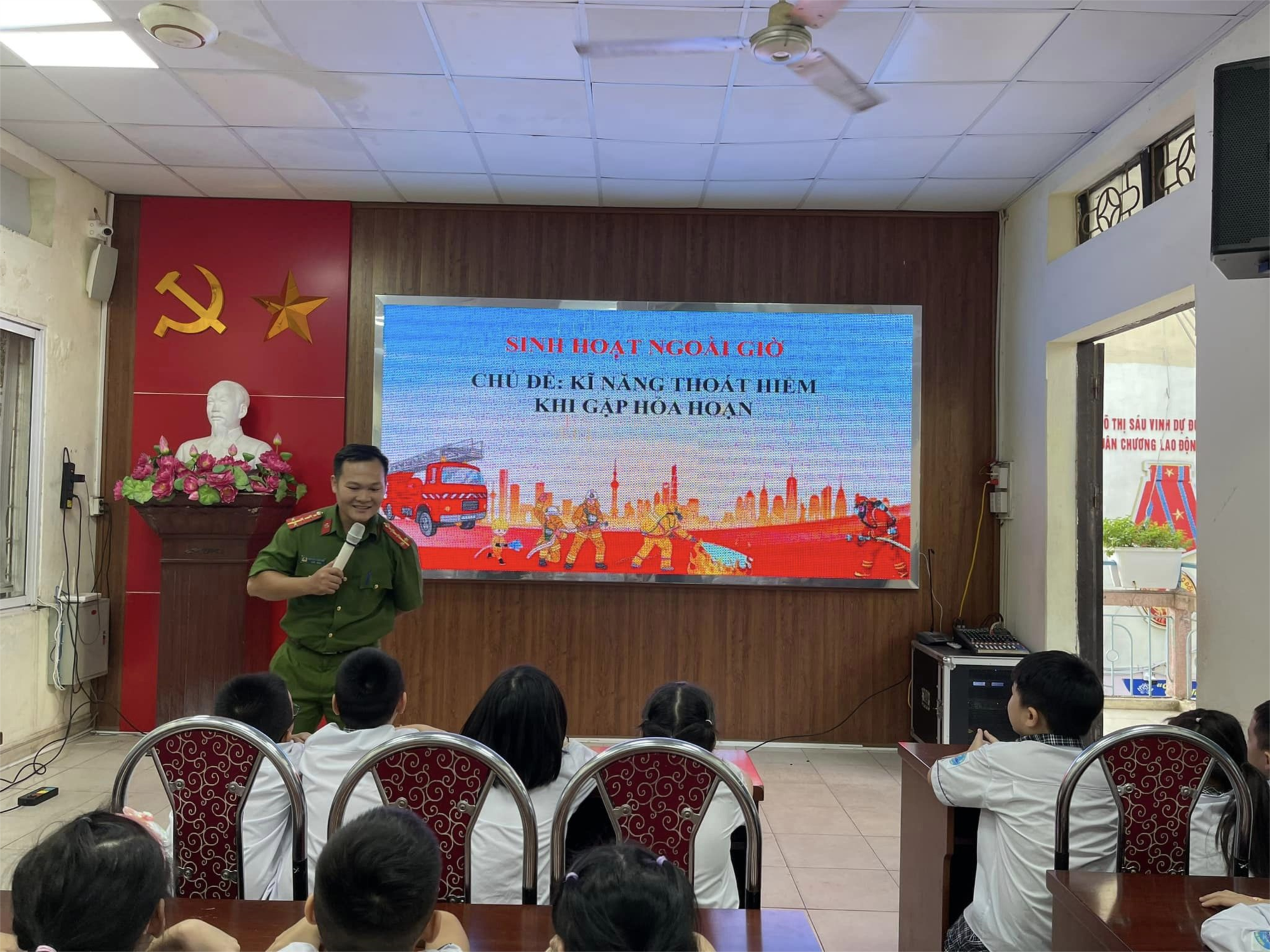 Thật vinh dự cho tập thể lớp 1A1, 1A6, 1A10 đã có một tiết học đặc biệt. Không phải là những con số khô khan trong sách giáo khoa mà là những kiến thức sống còn về phòng cháy chữa cháy. Điều đặc biệt hơn nữa là người truyền đạt những kiến thức quý báu đó là Đại úy Nguyễn Tuấn Anh-phòng cảnh sát Phòng cháy chữa cháy và cứu nạn cứu hộ công an thành phố Hải Phòng đồng thời là phụ huynh của em Nguyễn Ngọc Đại Dương-lớp 1A1.