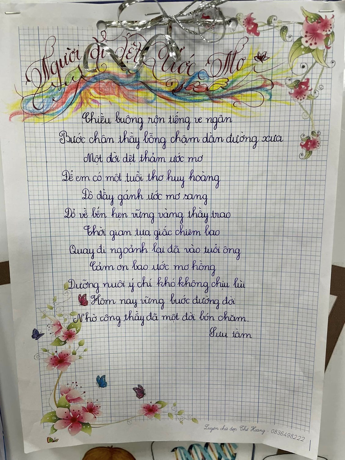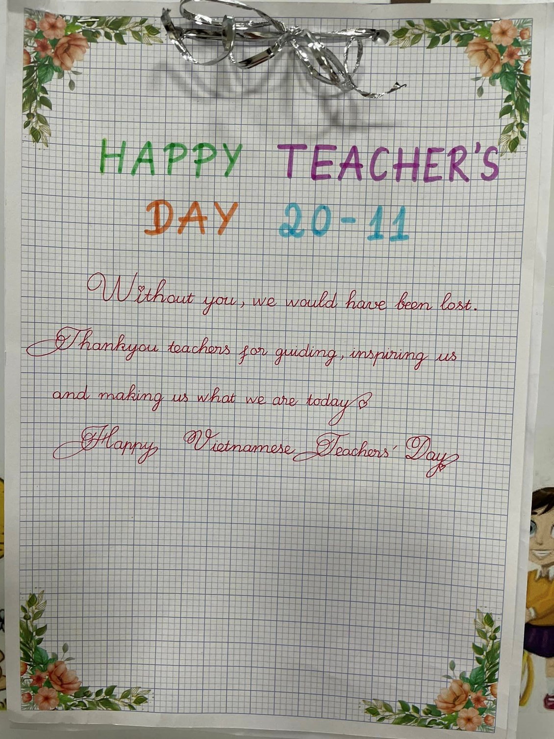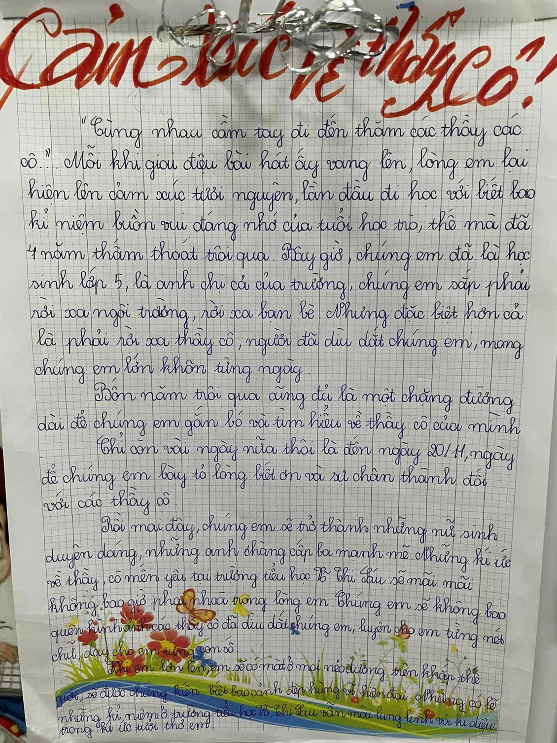 Thời gian có thể trôi, vạn vật có thể thay đổi. Nhưng những công ơn của thầy cô thì vẫn mãi trong lòng chúng em. Những lời dạy ấy mãi mãi không phai mờ. Thay cho lời muốn nói, chúng em xin kính gửi đến quý thầy cô những vần thơ, câu chuyện mà chúng em đã dành tất cả công sức và lòng nhiệt huyết gửi vào trong đó tất cả tình cảm của chúng em để kính dâng thầy cô… như một món quà ý nghĩa trong những món quà mà chúng em, học sinh khối 5 trường Tiểu học Võ Thị Sáu kính tặng lên thầy cô nhân ngày “Nhà giáo Việt Nam 20/11”.