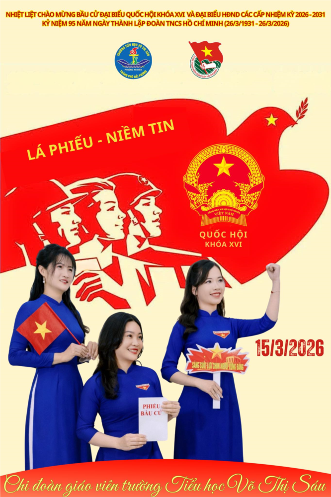 Trong không khí phấn khởi của những ngày tháng 3 lịch sử, hướng tới kỷ niệm 95 năm ngày thành lập Đoàn TNCS Hồ Chí Minh (26/3/1931 - 26/3/2026), Chi đoàn giáo viên trường TH Võ Thị Sáu đã triển khai chuỗi hoạt động tuyên truyền sáng tạo, ý nghĩa cho ngày bầu cử Đại biểu Quốc hội khóa XVI và Đại biểu HĐND các cấp nhiệm kỳ 2026 - 2031.