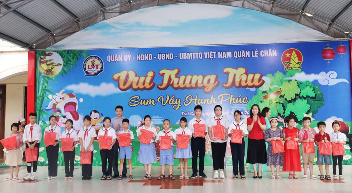 Quận Lê Chân cũng tặng quà cho hơn 1.500 trẻ em có mặt tại buổi Trung thu các phần quà với tổng trị giá 30 triệu đồng.