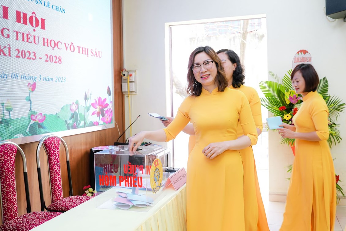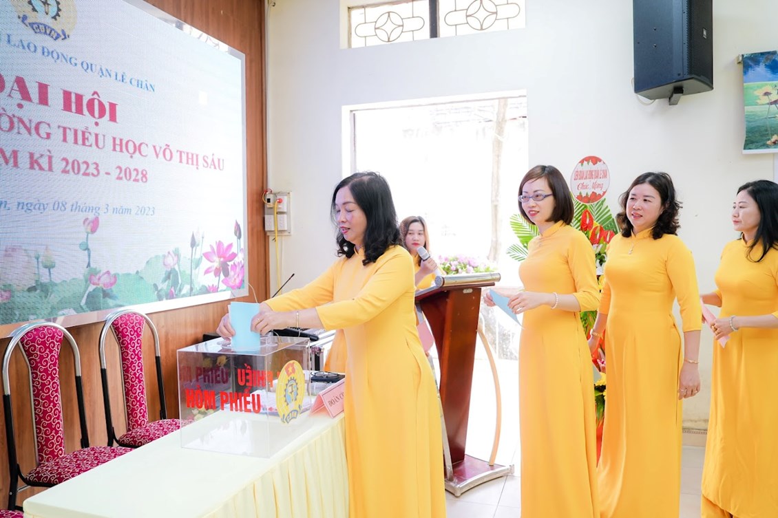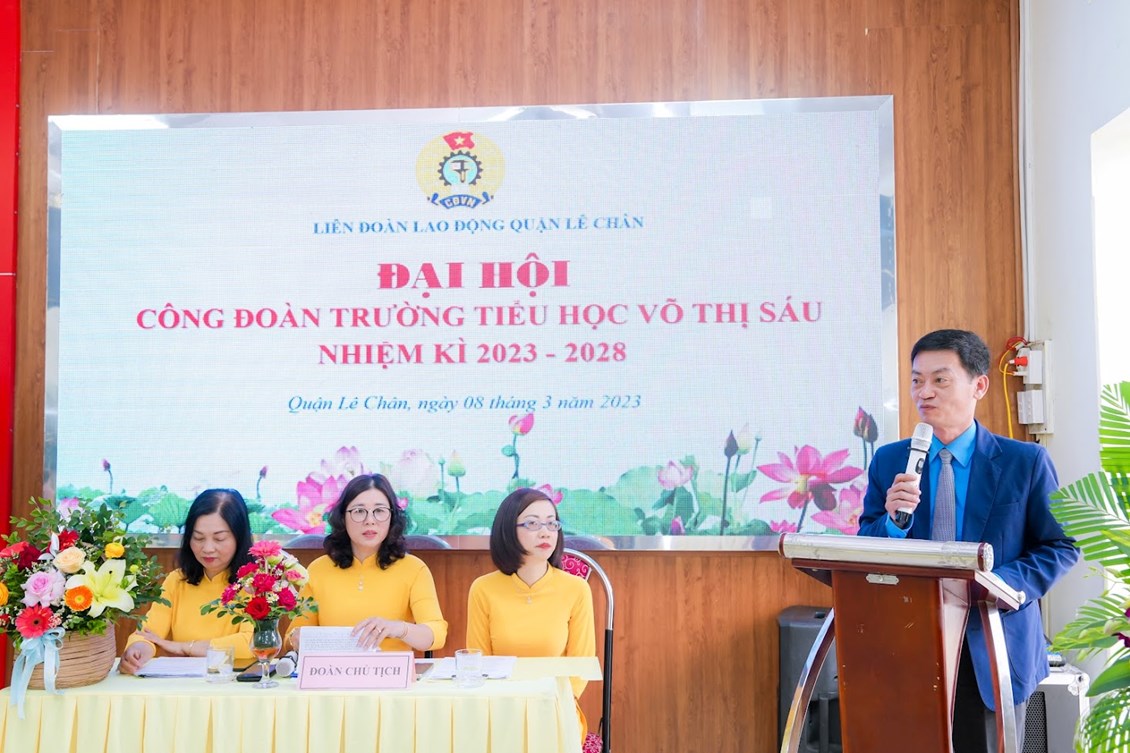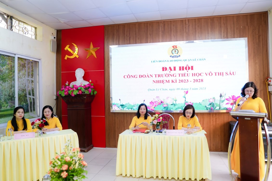 Hòa chung khí thế thi đua sôi nổi của công nhân, viên chức, lao động và đoàn viên công đoàn hướng về Đại hội Công đoàn các cấp, tiến tới Đại hội XI Công đoàn quận, Đại hội XV Công đoàn thành phố và Đại hội XIII Công đoàn VN; thực hiện Điều lệ XII Công đoàn Việt Nam và Hướng dẫn số 03 ngày 20/02/2020 của Đoàn Chủ tịch Tổng LĐLĐ Việt Nam về thi hành Điều lệ XII Công đoàn VN; Kế hoạch số 16 ngày 26/04/2022 của Ban Thường vụ LĐLĐ quận Lê Chân; sáng ngày 08/3/2023, Công đoàn trường tiểu học Võ Thị Sáu long trọng tổ chức Đại hội Công đoàn trường nhiệm kì 2023-2028.
