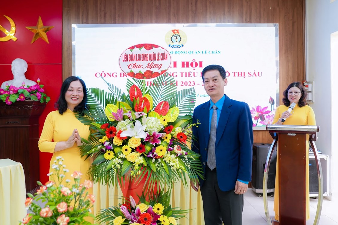 Đến dự Đại hội có ông Lê Trần Tùng Cương - Chủ tịch LĐLĐ quận Lê Chân; bà Trần Thị Mị - Bí thư chi bộ, hiệu trưởng nhà trường; cùng toàn thể cán bộ, đoàn viên công đoàn trường tiểu học Võ Thị Sáu.
