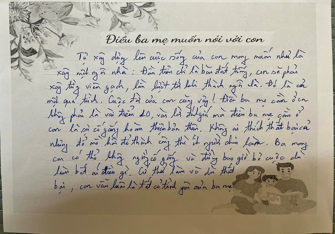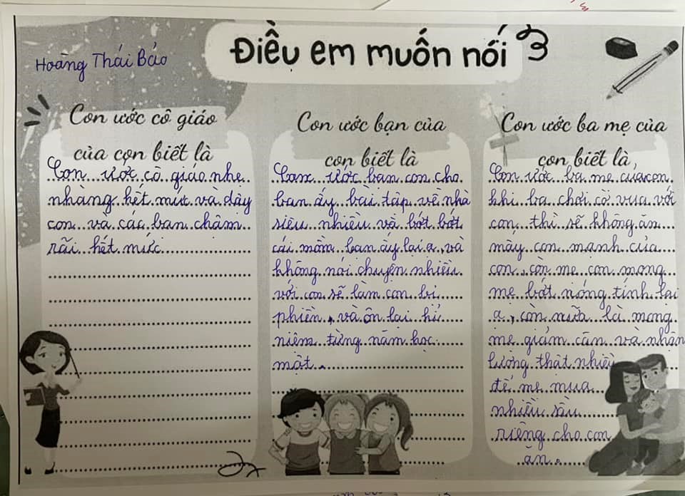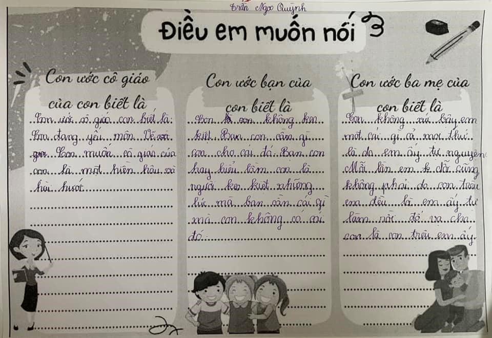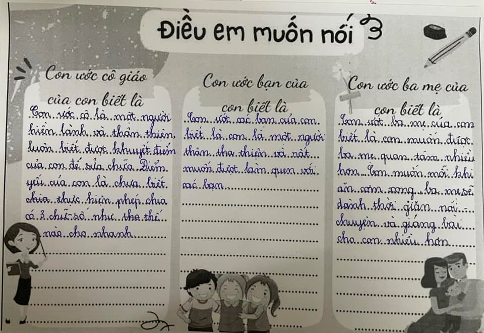 Cuối buổi họp chính là những dòng tâm sự, những lời động viên của bố mẹ dành cho các con. Và cũng từ “Điều em muốn nói” ấy, cô sẽ là cầu nối để giải quyết những hiểu nhầm giữa con và các bạn, những điều các con mong các bạn hiểu mình mà chưa có cơ hội giãi bày.