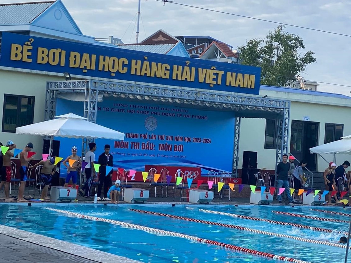 Thực hiện kế hoạch 233/KH-UBND ngày 11/9/2023 của UBND Thành phố về tổ chức Hội khoẻ Phù Đổng thành phố Hải Phòng năm học 2023-2024, từ ngày 24/10/2023 tại bể bơi trường Đại học Hàng Hải, diễn ra giải bơi nằm trong khuôn khổ của Hội khoẻ Phù Đổng thành phố.