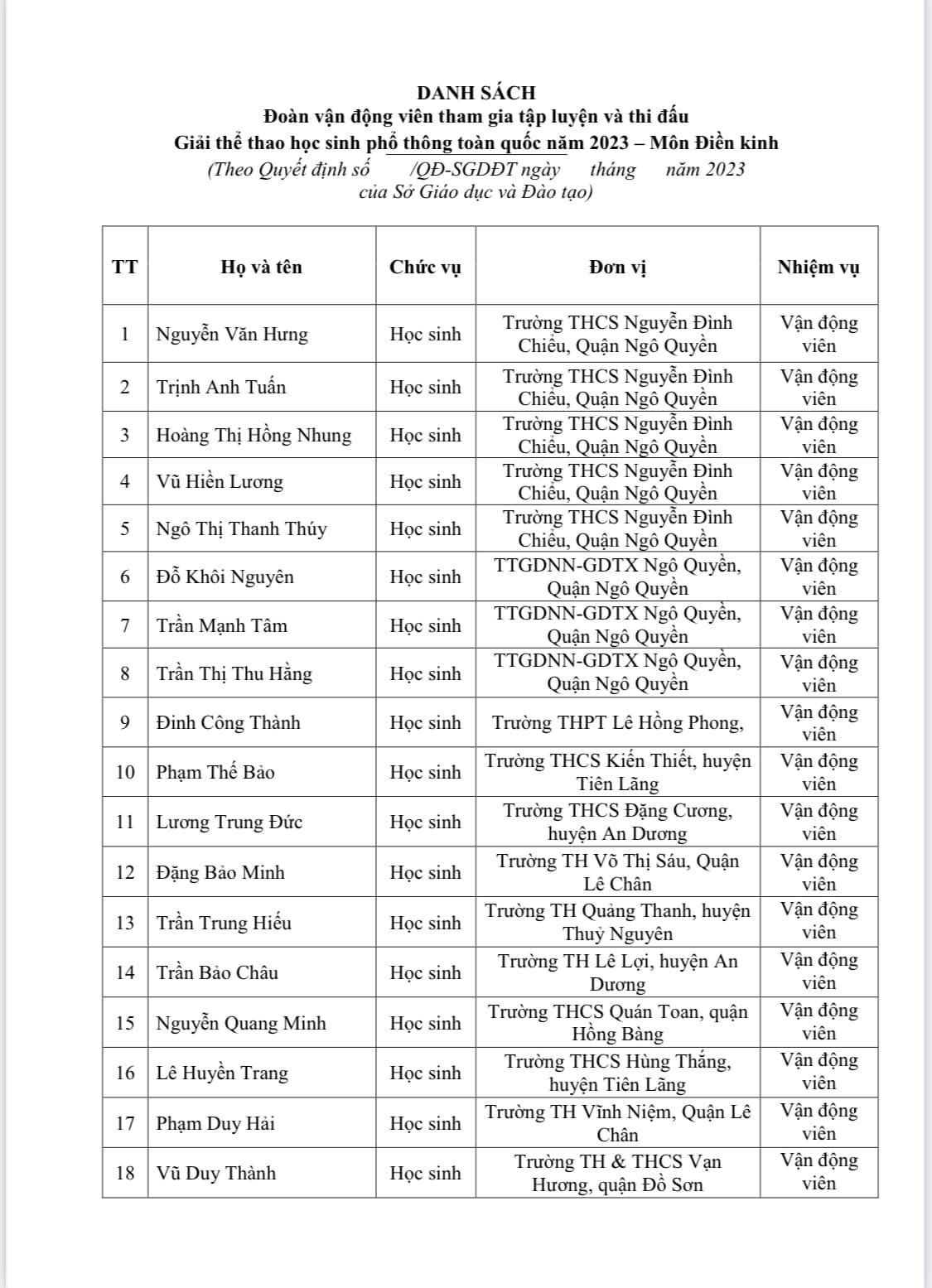 Xin chúc em Đặng Bảo Minh cùng các thành viên trong đoàn thể thao của thành phố Hải Phòng tham gia thi đấu đạt thành tích tốt nhất cho cá nhân, nhà trường và Thành phố Cảng thân yêu!