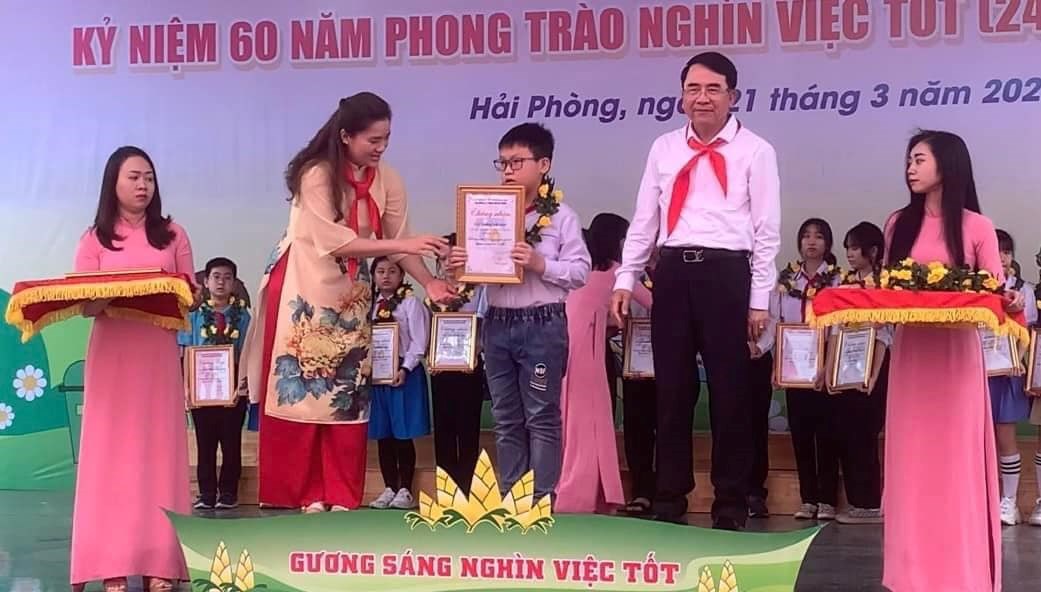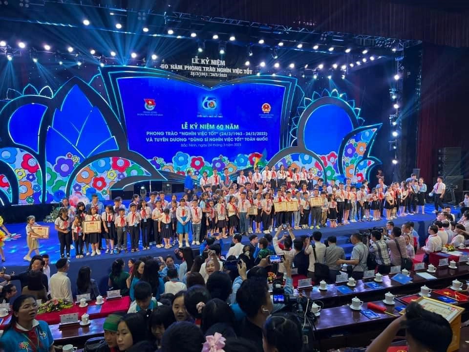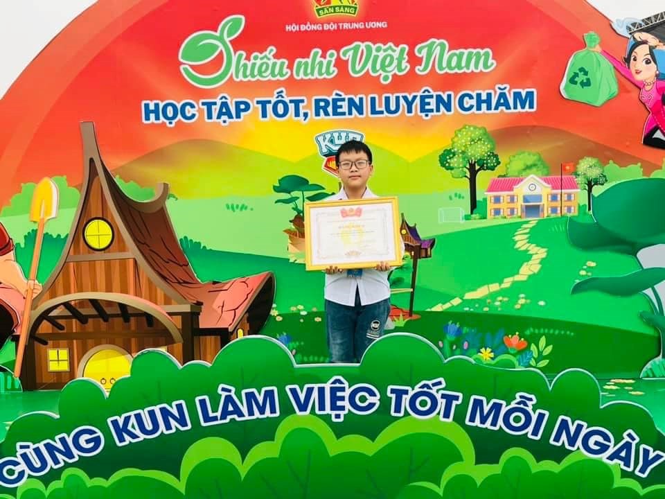 Và càng vinh dự và tự hào hơn khi em Hoàng Anh Khôi cũng là 1 trong 7 đại biểu được tham dự Chương trình Kỉ niệm 60 năm Phong trào “Nghìn việc tốt” cấp Trung Ương.