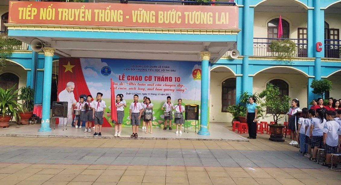 Thực hiện Kế hoạch công tác Đội và Phong trào thiếu nhi năm học 2023-2024, hôm nay, ngày 02/10/2013 liên đội trường Tiểu học Võ Thị Sáu long trọng tổ chức lễ chào cờ tháng 10.