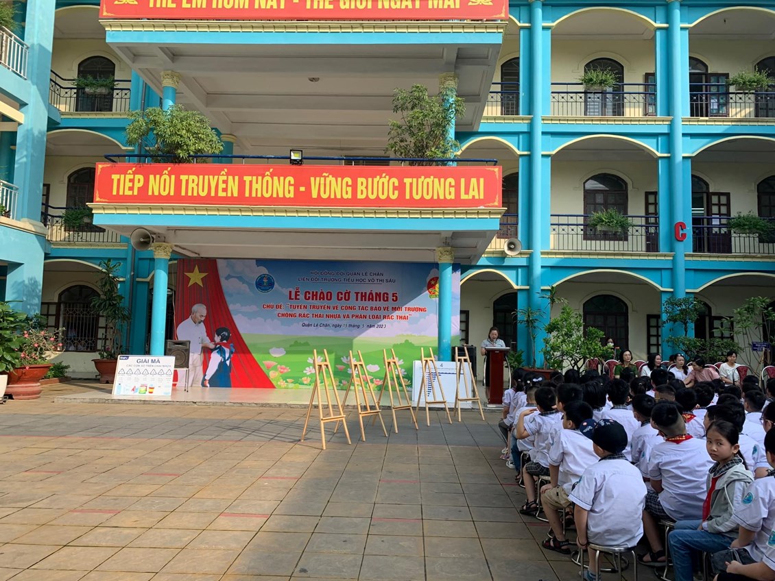 Sáng ngày 15/5/2023, Liên đội TH Võ Thị Sáu đã tổ chức thành công lễ chào cờ tháng 5 với chủ đề: “Tuyên truyền về công tác bảo vệ môi trường, chống rác thải nhựa và phân loại rác thải”.