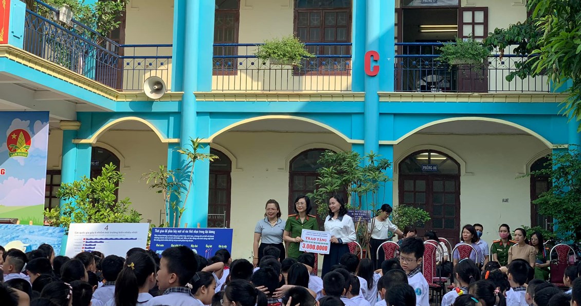 Về dự với buổi lễ có đồng chí Thiếu tá Nguyễn Thị Thuỳ Dương - Chủ tịch Hội phụ nữ phòng Cảnh sát môi trường công an thành phố. Về phía nhà trường có nhà giáo Trần Thị Mị - Bí thư chi bộ - Hiệu trưởng nhà trường.