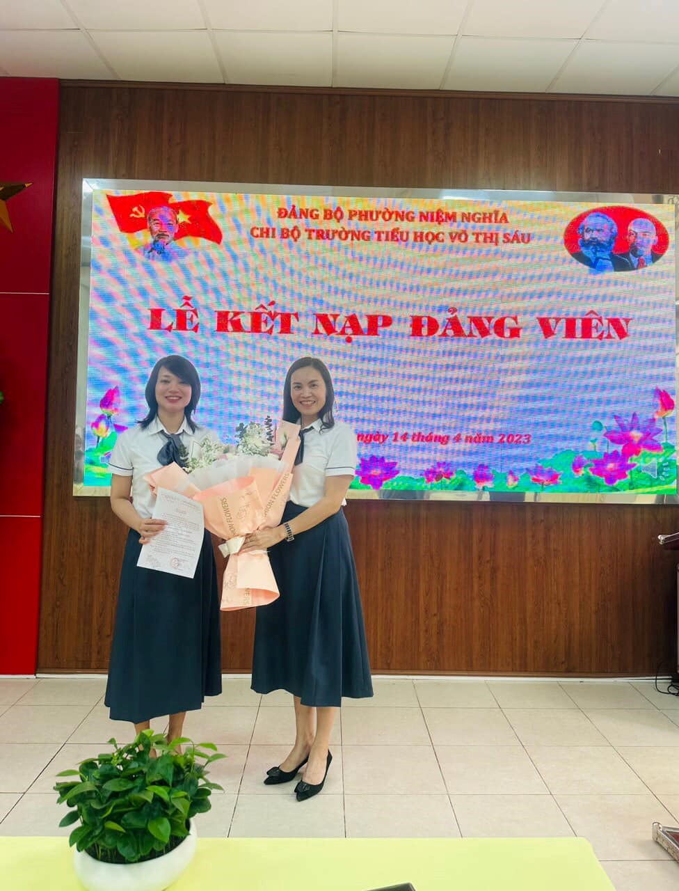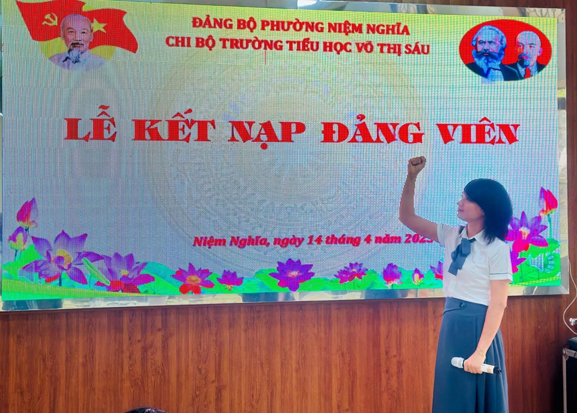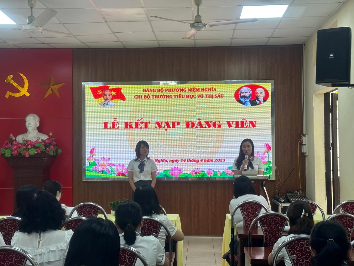 Thực hiện Nghị quyết Đại hội Chi bộ Trường tiểu học Võ Thị Sáu về việc phát triển Đảng viên. Ngày 14/4/2023, Chi bộ trường Trường tiểu học Võ Thị Sáu đã long trọng tổ chức lễ kết nạp Đảng viên mới đối với quần chúng ưu tú Nguyễn Thị Hương Quỳnh. Đây là sự kiện có ý nghĩa quan trọng trong công tác xây dựng Đảng, góp phần phát triển, nâng cao chất lượng và sức chiến đấu của Chi bộ trường nói chung và các cá nhân Đảng viên nói riêng.