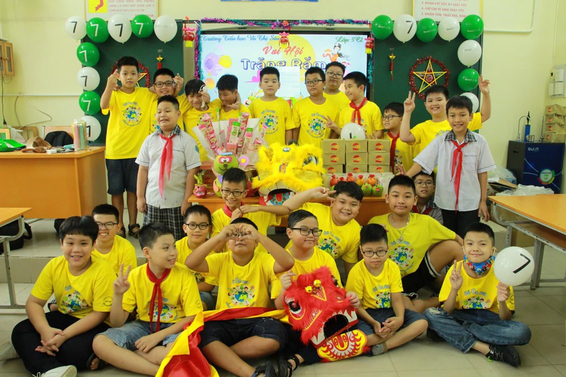 tiếng trống trường vang lên rộn rã, tưng bừng, được chào đón một năm học mới với bao niềm vui và hy vọng. Và đây cũng là thời điểm chúng em được đón một cái Tết Trung thu hạnh phúc, vui vẻ bên gia đình, thầy cô, bạn bè. Càng đặc biệt hơn, năm nay – chúng em là những học sinh lớp 5, là năm cuối cùng chúng em được đón tết trung thu tại mái trường Tiểu học Võ Thị Sáu thân thương.