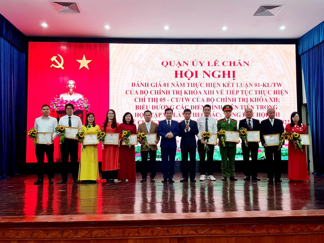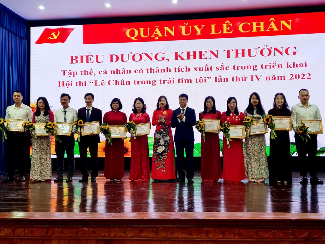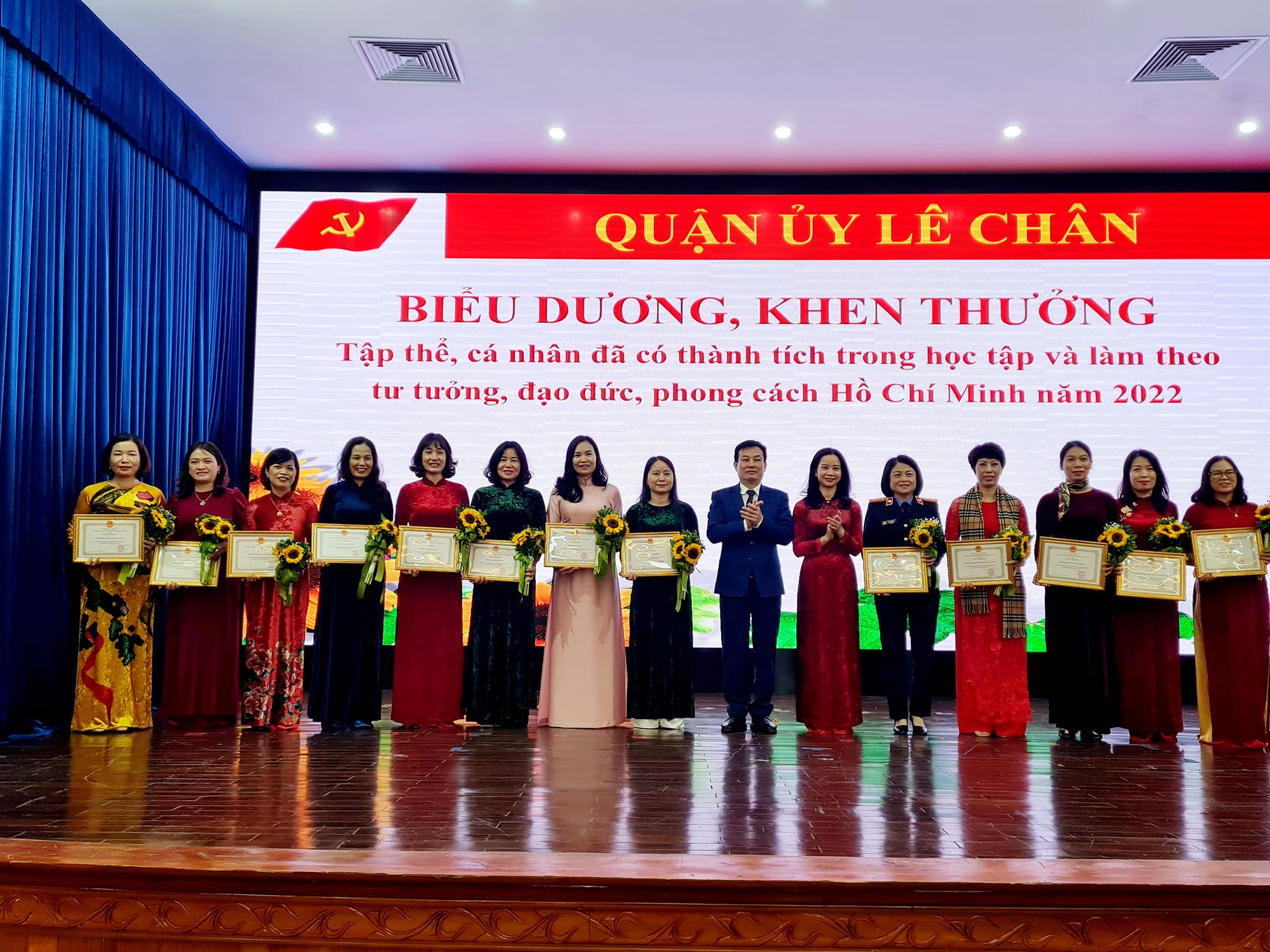 Nhân dịp này, UBND quận Lê Chân tặng Giấy khen cho 27 tập thể, 11 cá nhân đã có thành tích trong học tập và làm theo tư tưởng, đạo đức, phong cách Hồ Chí Minh năm 2022; Ban Thường vụ Quận ủy tặng Giấy khen cho 7 tập thể, 12 cá nhân có thành tích xuất sắc trong triển khai Hội thi “Lê Chân trong trái tim tôi” lần thứ IV năm 2022.
