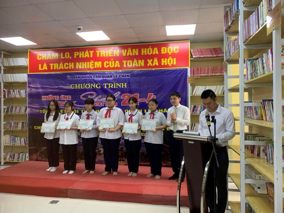 Sáng ngày 20/4/2023, tại Thư viện sách đọc miễn phí quận Lê Chân, Ủy ban nhân dân quận tổ chức thành công Chương trình hưởng ứng Ngày sách và Văn hóa đọc Việt Nam năm 2023; Tổng kết Hội thi thiếu nhi quận Lê Chân vẽ tranh theo sách, báo năm 2023 và Giới thiệu mô hình thư viện số.