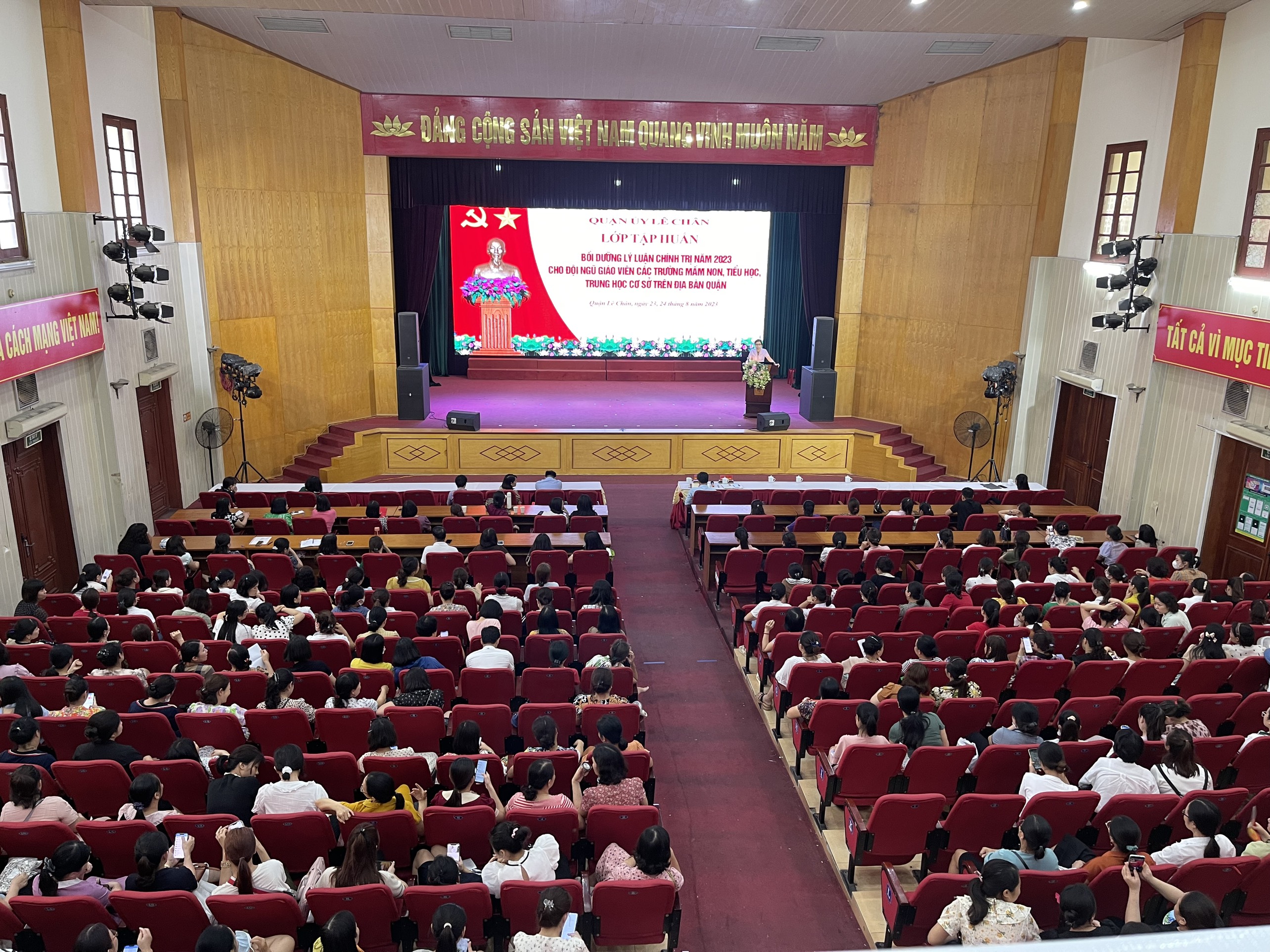 Sáng ngày 24/8/2023, toàn thể cán bộ, giáo viên, nhân viên trường TH Võ Thị Sáu tham gia lớp tập huấn bồi dưỡng lý luận chính trị năm 2023 của Quận ủy Lê Chân tổ chức.