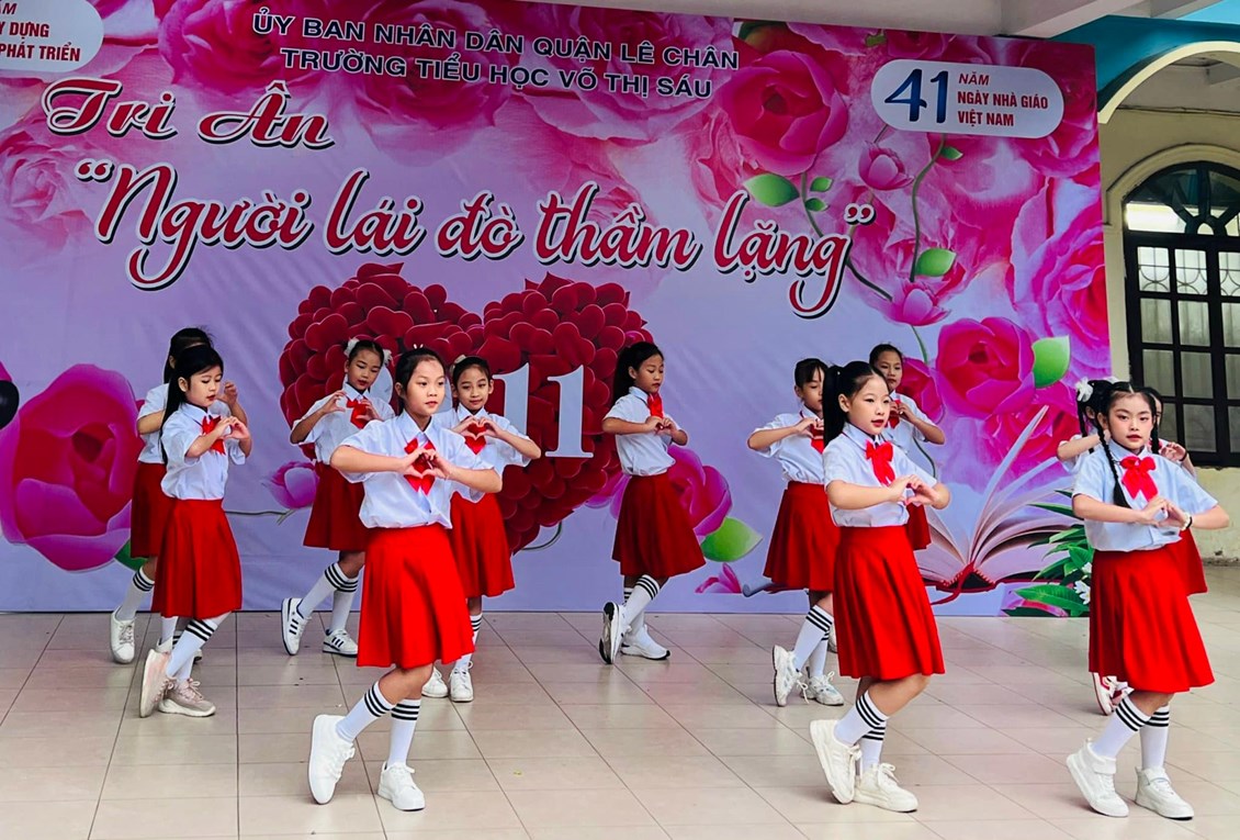 Để bày tỏ lòng biết ơn các em học sinh trường TH Võ Thị Sáu xin được gửi tặng những lời ca tiếng hát, điệu múa thay cho lời tri ân sâu sắc nhất đến các thầy cô. Kính chúc các thầy cô mạnh khoẻ, nhiệt huyết và tài năng để tiếp tục sự nghiệp giáo dục vẻ vang.